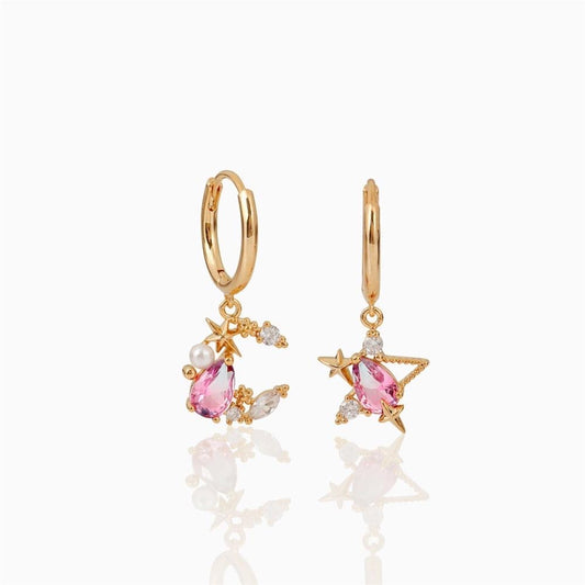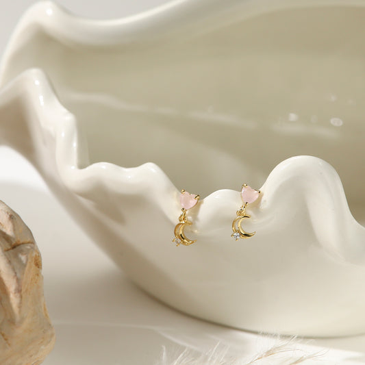 Pink Heart & Moon Earrings – Celestial Drop