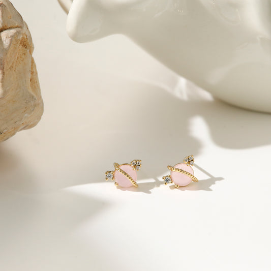 Pink Saturn Stud Earrings – Diamond Ring Glow